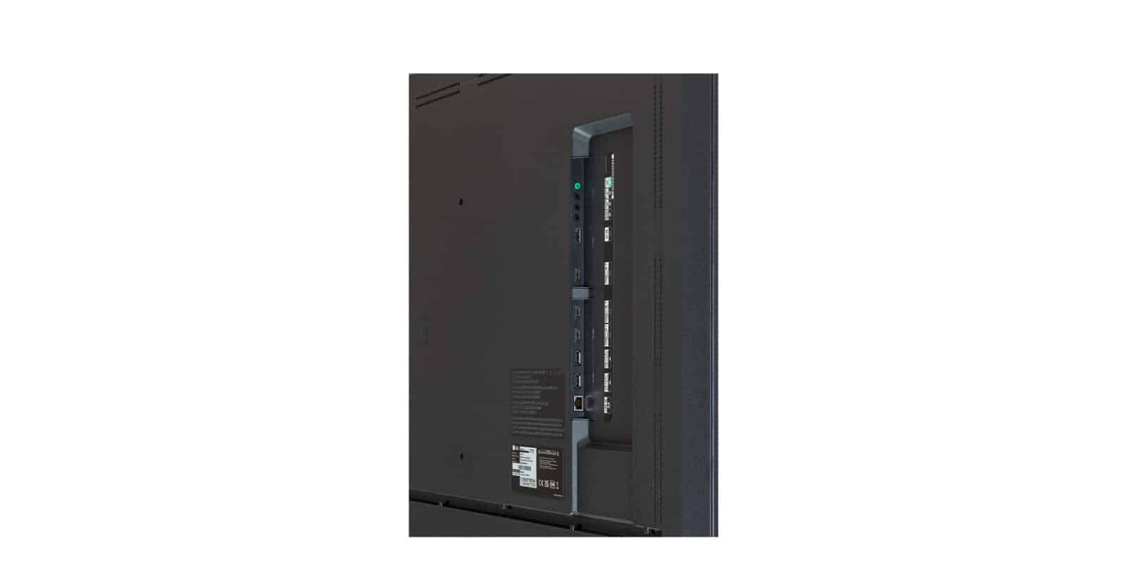 Progettato con cornici sottili e una gestione semplificata dei cavi, l’UH5Q consente di risparmiare spazio. Grazie alle prese di alimentazione nascoste, può essere installato vicino alla parete, lasciando solo circa 13,5 mm di spazio con la staffa sottile.