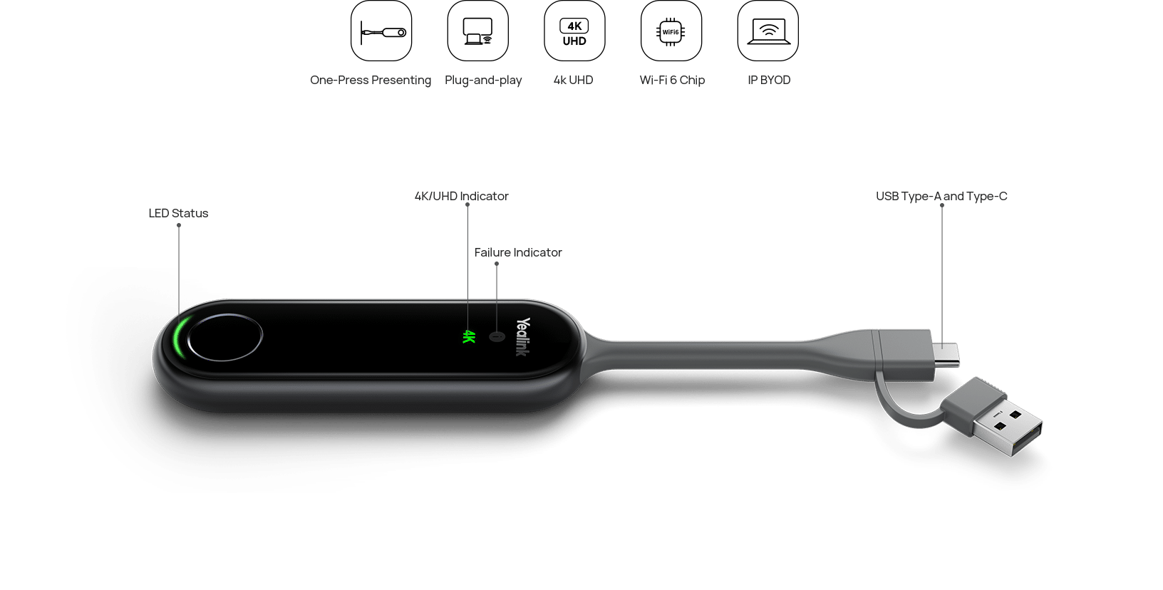 Il Yealink PA20 è un nuovo assistente per presentazioni in 4K Ultra HD. Grazie al supporto per streaming in uscita fino a 4K/30FPS con codifica hardware UHD, il PA20 semplifica il lavoro eliminando la necessità di installare software o driver.